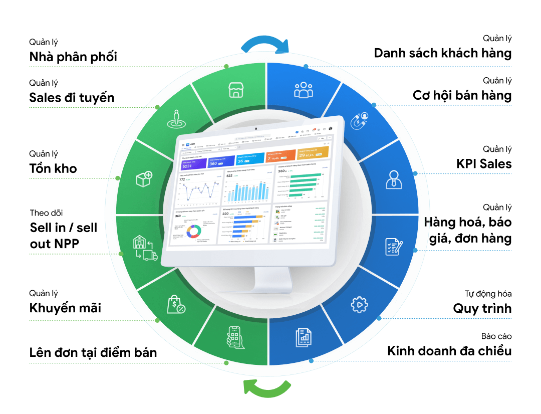 - Đồng bộ báo giá, hóa đơn, sales chủ động lên đơn